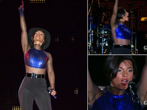 O show começou com um considerável atraso no palco principal. A culpa foi de uma chapinha no cabelo que não saiu conforme o esperado. E, quando Alicia Keys entrou no palco, realmente pareceu que as coisas não estavam perfeitas. Sob os olhos de milhões de pessoas, nenhum detalhe passa desapercebido, e um buraco debaixo do braço ficou visível em um figurino não exatamente charmoso. Mas o principal estava funcionando bem:voz e a presença de Alicia estavam a 100%.